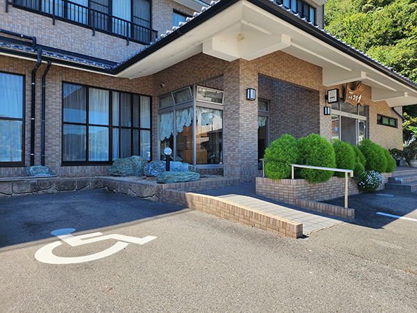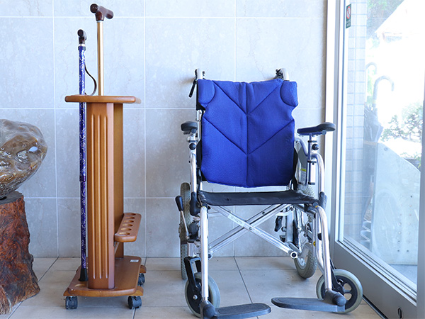 車椅子専用駐車場や玄関のスロープ、エレベーターなど館内をスムーズに移動できる